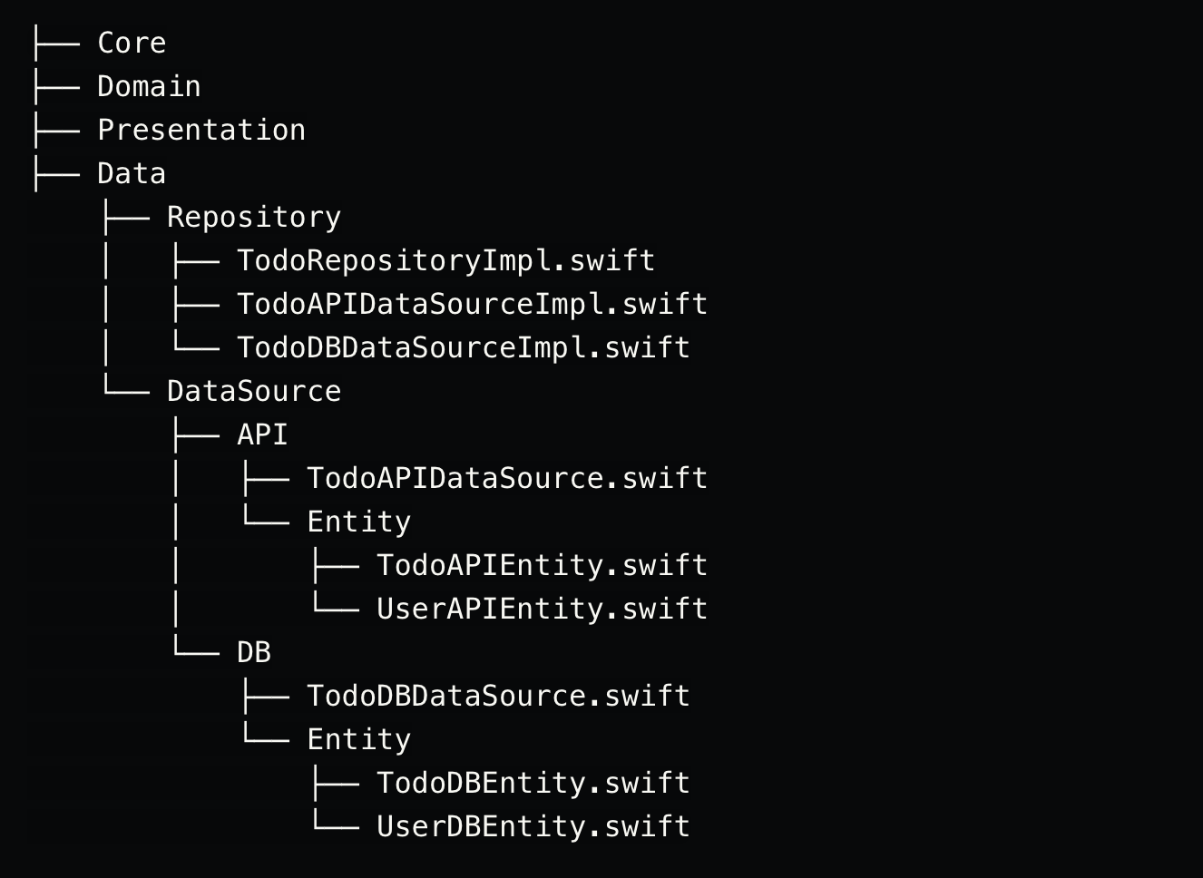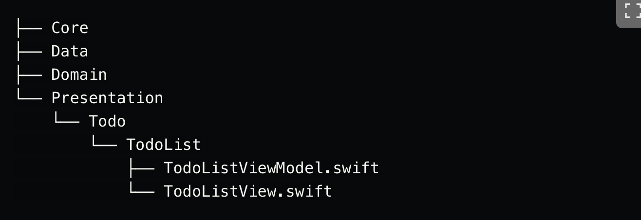 Presentation 은 단순히 Todo 로 나눈다기 보다 Component, Screen 으로 나누고 각 스크린 만듬.